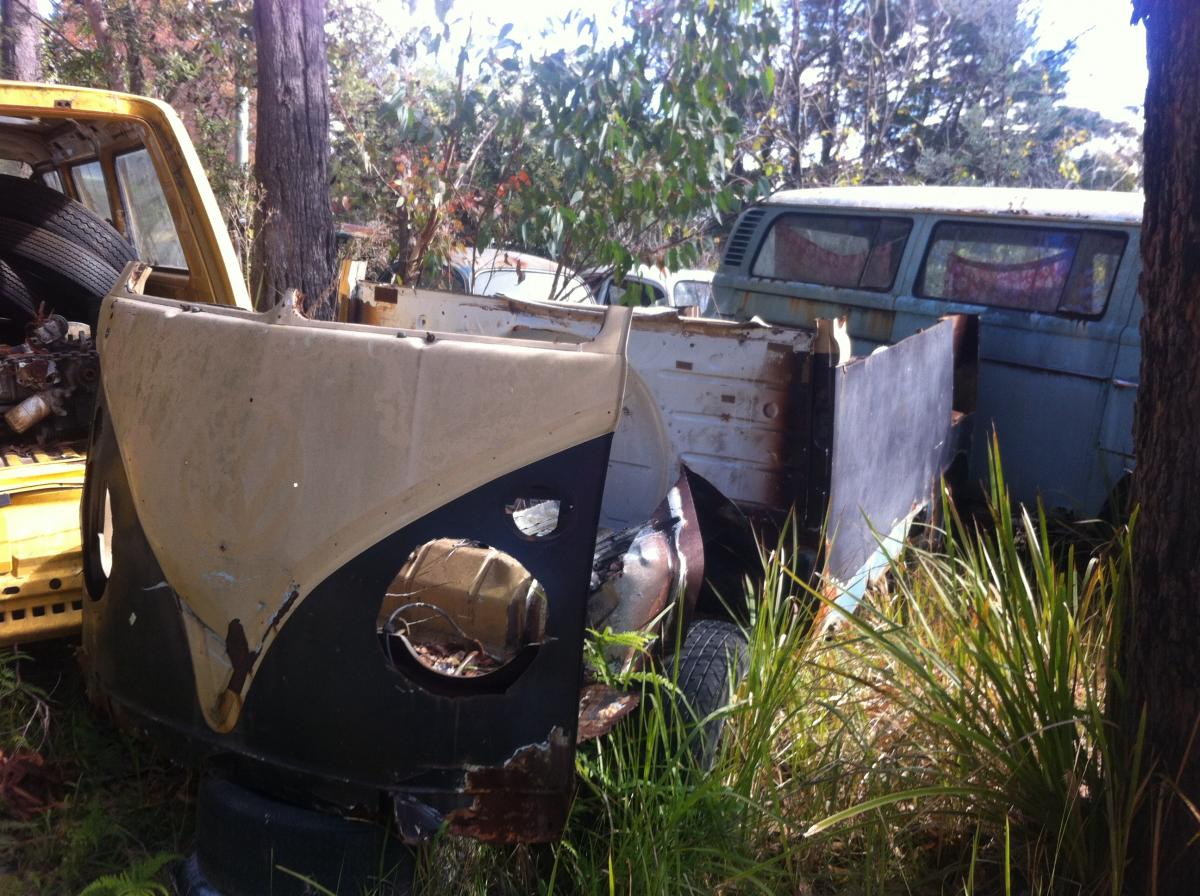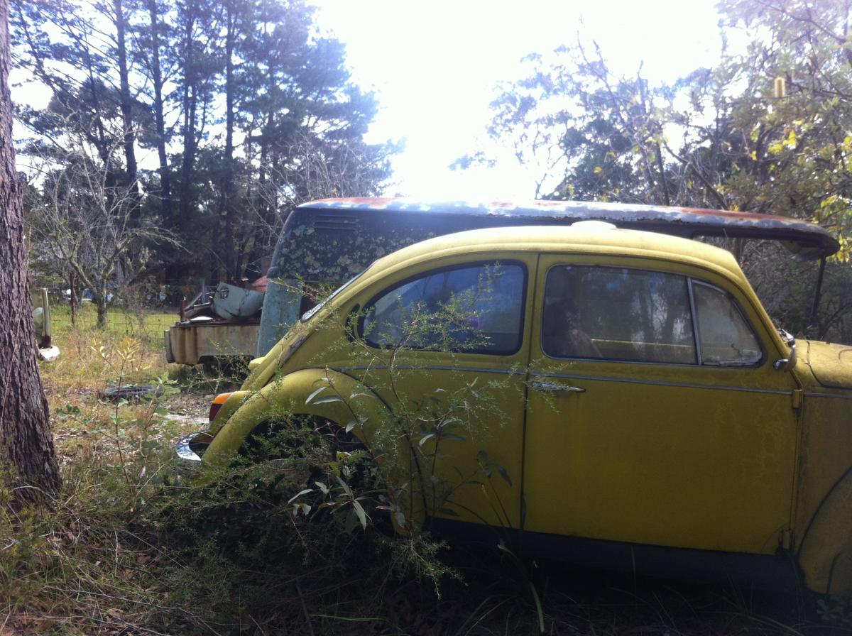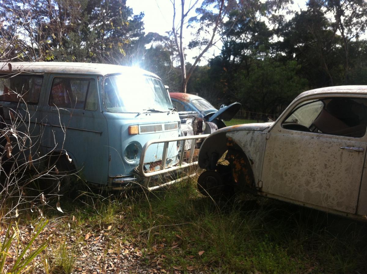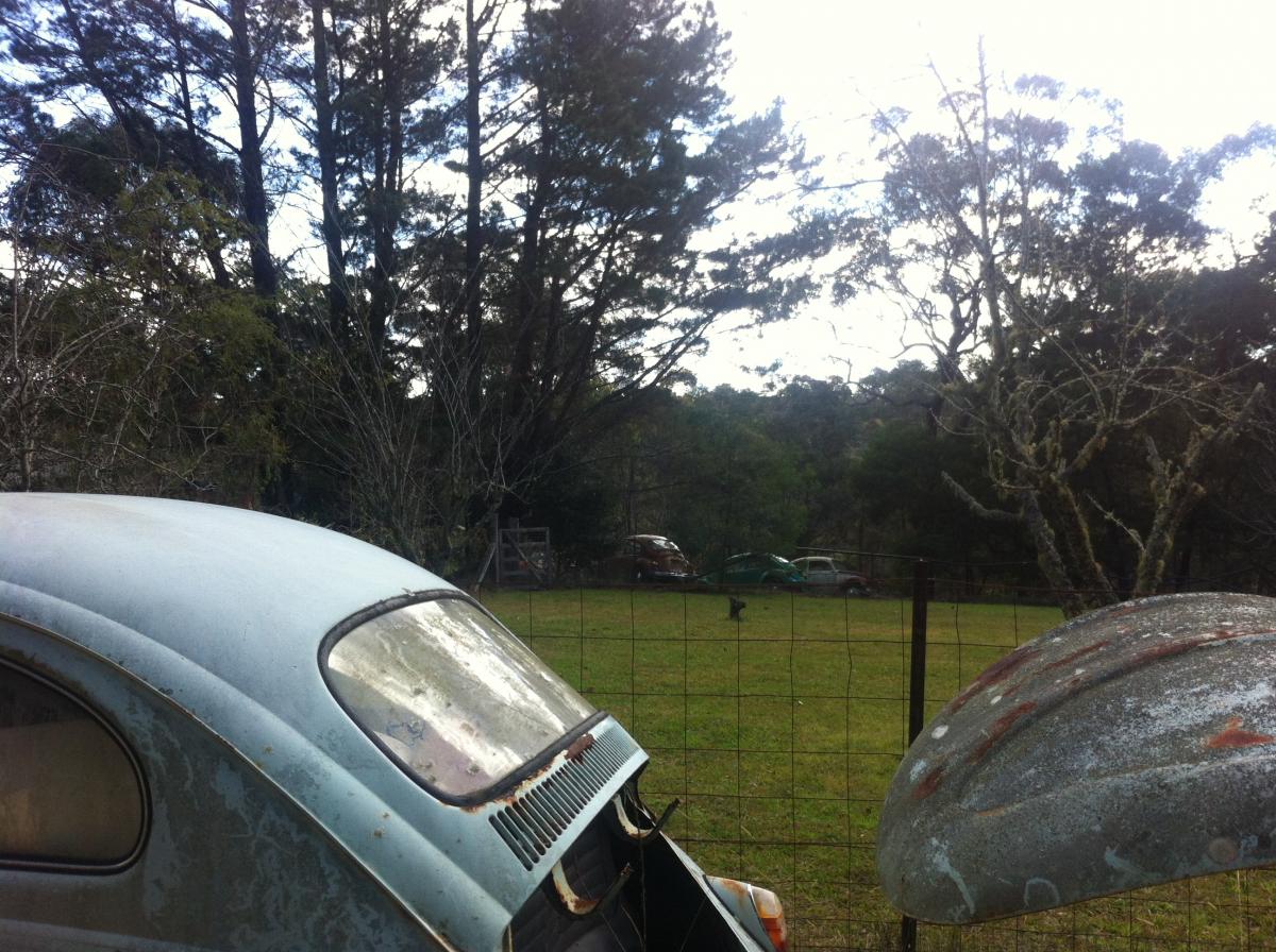 We stumbled across a VW graveyard on the weekend! It was very cool, with heaps of old VW Beetles, and a few Bay Window Kombis, Splitscreens and Type 3s.
